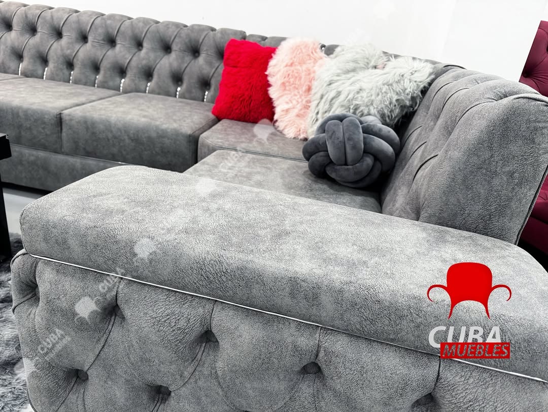 Este sofá esquinero en **polipiel gris aspeado** combina estilo, comodidad y un diseño que realza cualquier espacio. Líneas modernas, textura premium y un confort que se siente desde el primer momento ?️?